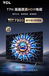 目前TCL T7H已经在天猫官方旗舰店开启预售,7月31日正式开售,即日起-7月31日19:30付定金至高直降2000元,开售半小时内付尾款前10名可销售5折购机特权,此外TCL还提供了付定金享特权礼包和晒单等活动,在保持高画质的同时,价格与福利也足够亲民,适合HDR影音爱好者选购。 #不忽悠人的高画质真HDR电视#
